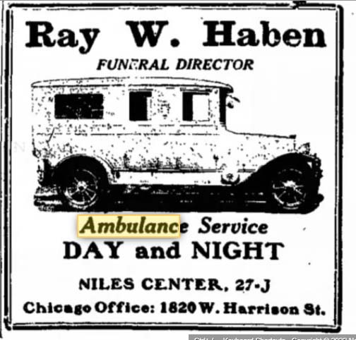 Before November 1, 1928 there were no Chicago fire Department ambulances in Chicago. so if you needed to get your relative to the hospital you either drove the person yourself or relied on that “black maria” police patrol wagon