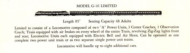 the MTC plant was sold in November 1956 to the Allan Herschel company of Tonawanda New York who specialized in many amusement rides, particularly carousels and roller coasters. Allan Herschell continued to build the G-12 and G-16 MTC trains until 1963, when the design was scrapped for their own S-16, a 16” gauge train. 41 S-16 were built. Later Herschel built 49 of the larger S-24 Iron Horse, the big brother of the popular S-16 but on a 24” gauge . The last S-24 was shipped on September 29, 1970.