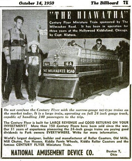 Their most popular and recognizable model was the “Century Flyer“, From the 1940s to the 1960s, NAD also built some full-size rollercoasters, but was sold in April 1973 and renamed International Amusement Devices Inc, based out of Sandusky, Ohio who specialized in park design and brokering rides.. Aurel Vaszin died in 1979.