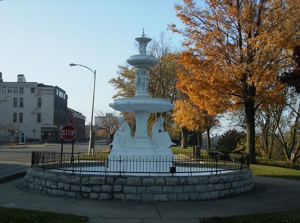 In September 1892 H.F Bucklin, a Chicago medicine manufacturer and owner of the Whitcomb hotel in St. Joseph Michigan purchased the fountain for only $500 and first set it up in Michigan near the Pottawatomie burial ground. In 1974 it was refurbished by St. Joseph City and the Fort Miami Heritage Society and placed in Lake Bluff Park in St. Joseph Michigan, renamed the Maids of the Mist fountain. It quickly became a St. Joseph landmark, also known as the “Stone Maidens”.
