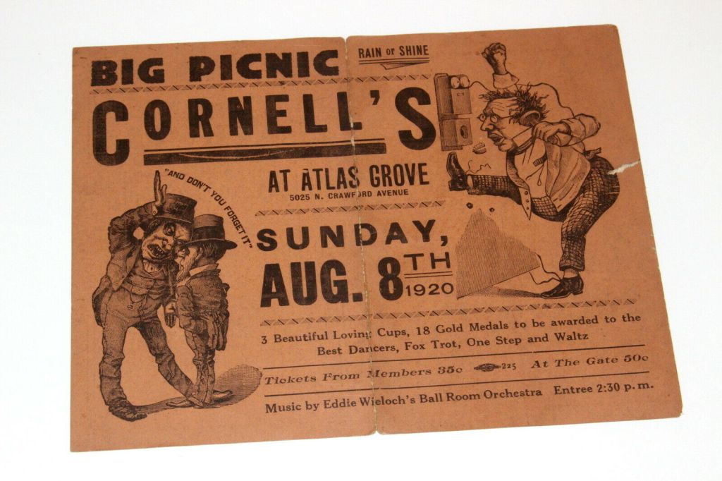 During its heyday in the 1900s and 1910s, Atlas Grove at 5125 n crawford, was the southernmost of three large picnic groves along the east side of North 40th Avenue (now Pulaski) Road). Atlas Grove was bounded roughly by Nagl’s Grove on the north, Springfield Avenue on the east, Argyle Avenue on the south, and 40th Avenue on the west. The Atlas Grove restaurant and tavern fronted 40th Avenue, behind which the picnic grove was located. The grove featured an outdoor dance floor, a bowling alley, a beverage bar, and access to a small pond.