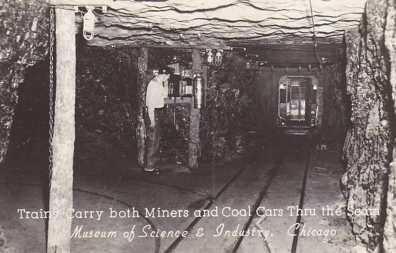 Previous Image Next Image postcard-chicago-museum-of-science-and-industry-coal-mine-miners-railroad-underground-c1950-1