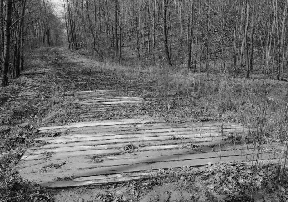Plank roads were cheap to build, usually heavy planks a few inches thick and eight feet long attached crosswise to wooden stringers set into the roadbed.. Pine and hemlock were sometimes used for planking, but oak and black walnut, although more expensive, were more durable and long-lasting.