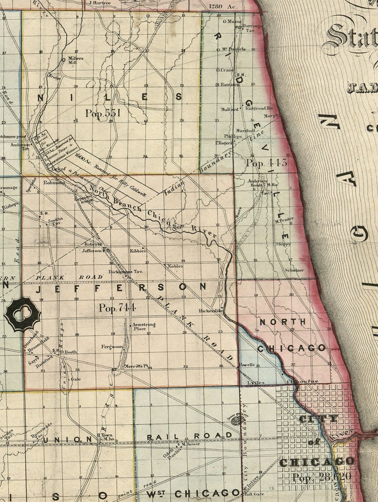 Describe by Andreas “as a crooked wagon track leading from Kinzie Street through Jefferson to the Western part of Niles and thence on through Northfield toward Deerfield it runs parallel for about 9 miles with Milwaukee with the two merge “